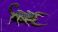 An up-close perspective of a scorpion on a textured violet surface, showcasing intricate detail and vivid color.