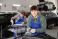 Owoce - Positive young man in comfortable green hoodie and blue overalls working in auto body repair... #1877022572