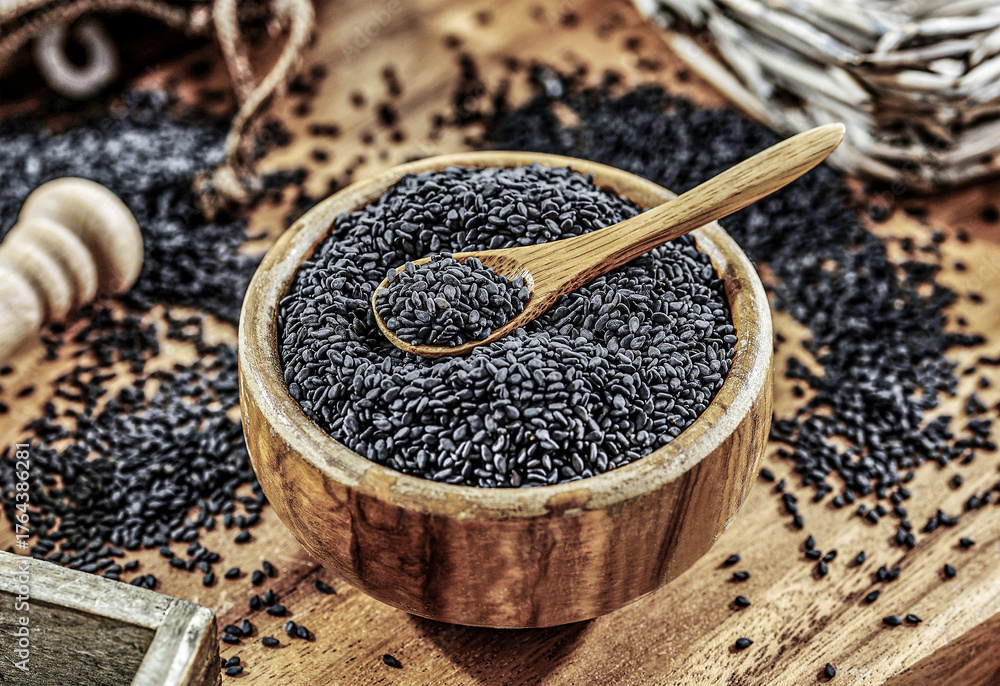 Czarny - Sezam czarny w drewnianej miseczce #1764386281