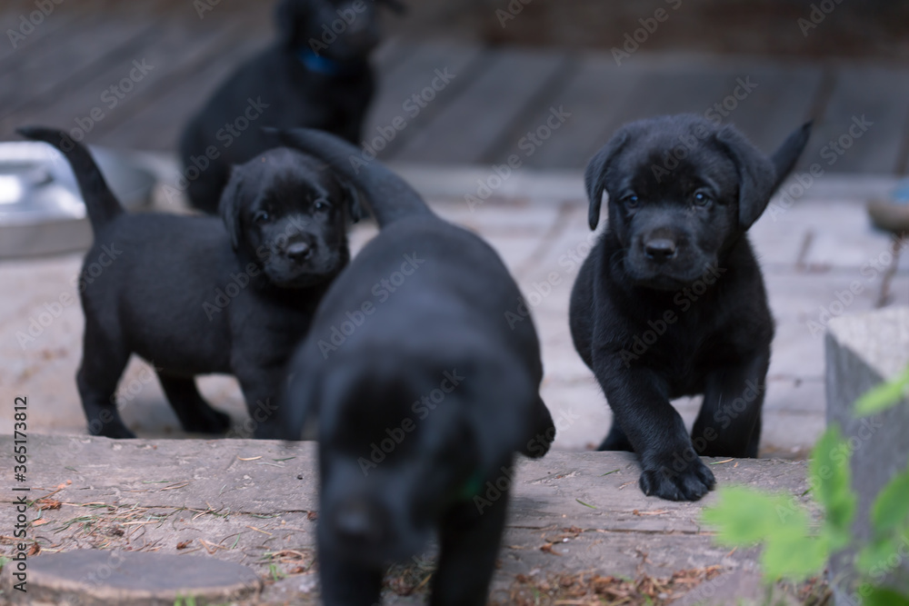 Czarny - labrador retriever, czarny szczeniak wchodzi po schodach #365173812