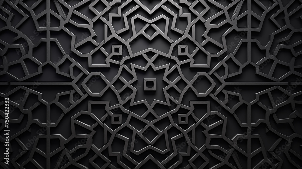 Czarny - Trójwymiarowe tło z ornamentami w marokańskim stylu. Geometryczne kształty. Szablon symetryczny. #750422332