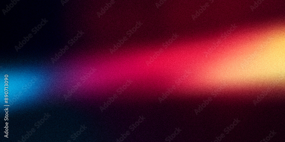 • Ziarniste gradientowe tło w kolorach czarny czerwony, niebieski szum tekstura na tapecie. Szablon baneru lub plakatu w stylu graficznym retro. Światła ledowe holo bokeh na projekcie okładki