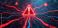• Abstract digital network shows warning sign with glowing red lines indicating system overload. Danger signals flash amid data streams. Tech failure, alert, risk alert.