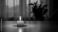 Rośliny - Satu lilin menyala di atas meja dengan latar belakang gelap dan bayangan tanaman #1976114583
