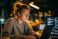 Kawa - Kobieta pracująca zdalnie w branży IT, skupiona przed laptopem, w nowoczesnym domowym biurze,... #1604322358
