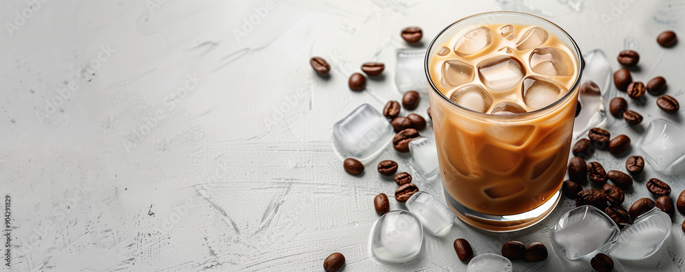 Kawa - Ziarna kawy, kubek kawy, kostki lodu #904291829