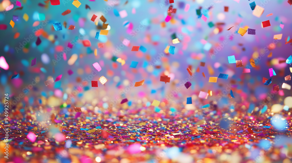Taniec - Kolorowe konfetti opada na tło, tworząc fantastyczny efekt pełen żywych barw i zabawy. #949925724