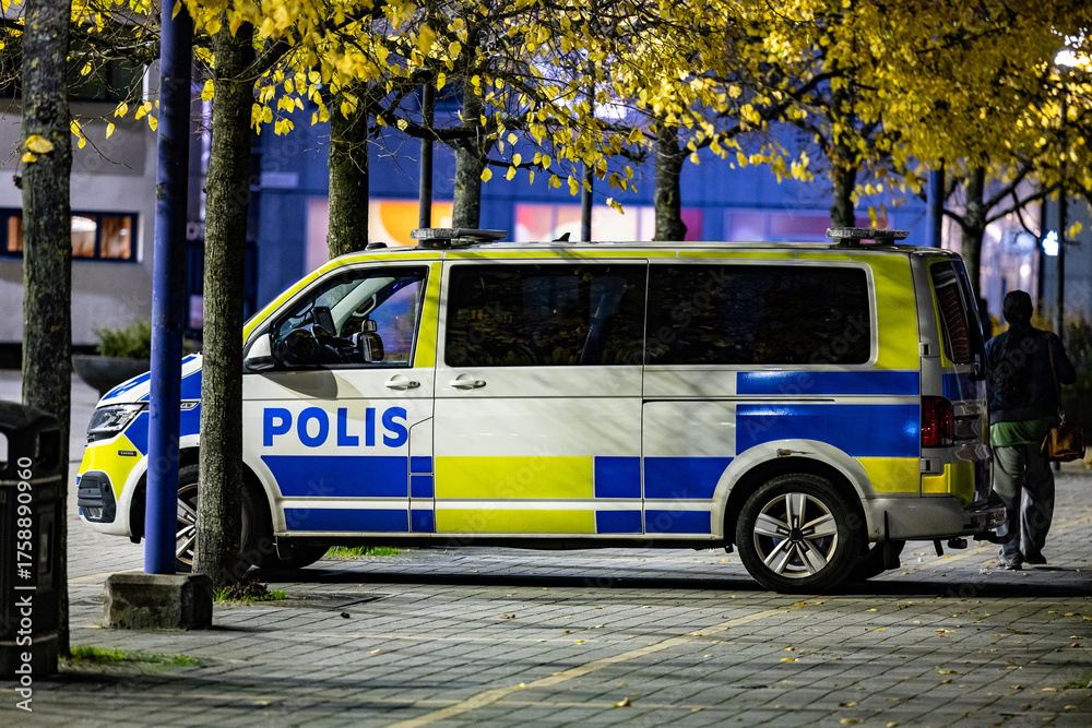 Auta - Policja szwedzka - radiowóz na patrolu w mieście. #1758890960