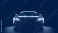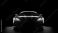 • Piękny, czerwony, sportowy samochód z włączonymi światłami na czarnym tle