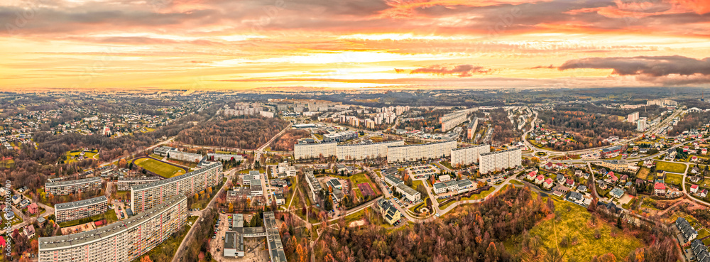 • Miasto Jastrzębie-Zdrój na Śląsku w Polsce. Panorama z lotu ptaka jesienią.