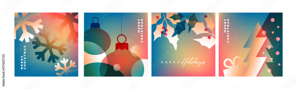 • Merry Christmas and Happy New Year. Vector illustration templates for holiday greeting card, background, website and social media banner, marketing material.