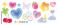 • Valentine cute icon vector set with glossy hearts, clover, cherry, strawberry, star, moon and pastel candy elements on white background. Kawaii design for stickers, prints and cards.