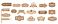 • Circus emblems. Carnival retro sign boards, fair direction pointers arrows funfair vintage signboards festival invitation posters tents entrance badges, kicky vector illustration