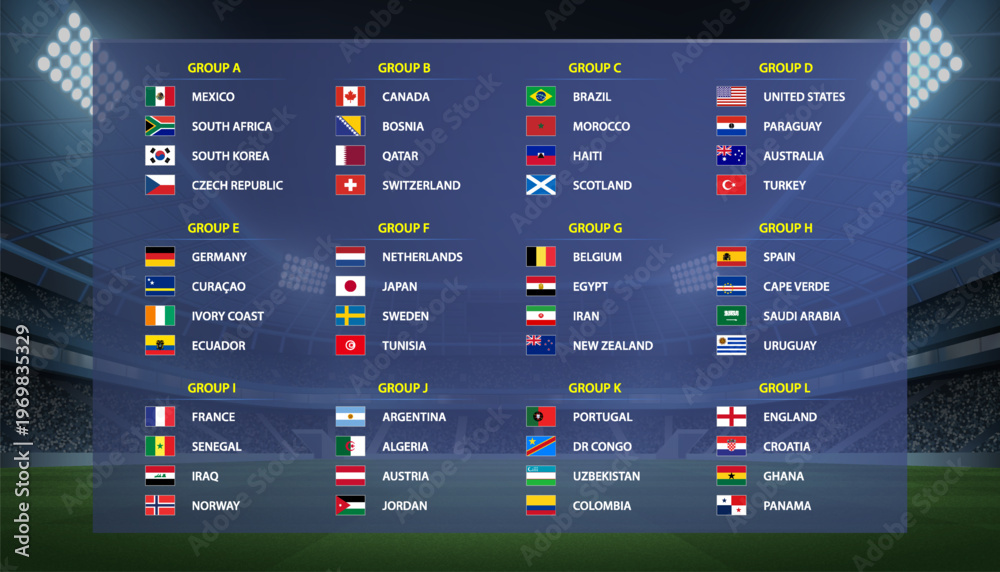 • International football tournament 2026 group stage teams list layout