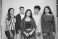 • Group of young indian gen z friends standing together on a white background looking at camera.