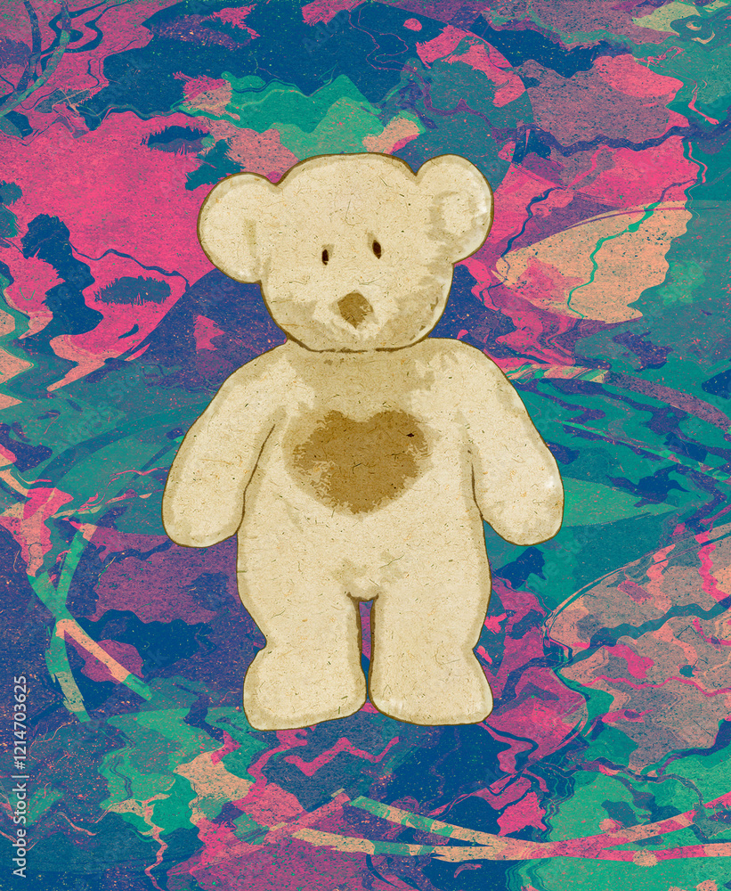 Bajki - Ilustracja pluszowy miś kolorowe tło. #1214703625