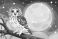 • Sowa na gałęzi na tle nocnego nieba z księżycem w pełni i konstelacjami. Symbol mądrości.