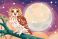 Dla Dzieci - Sowa na gałęzi na tle nocnego nieba z księżycem w pełni i konstelacjami. Symbol mądrości. #1631886204