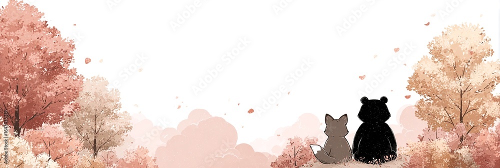 • LIS I NIEDŹWIEDŹ SADZĄCY DRZEWO - ILUSTRACJA W STYLU PŁASKIM