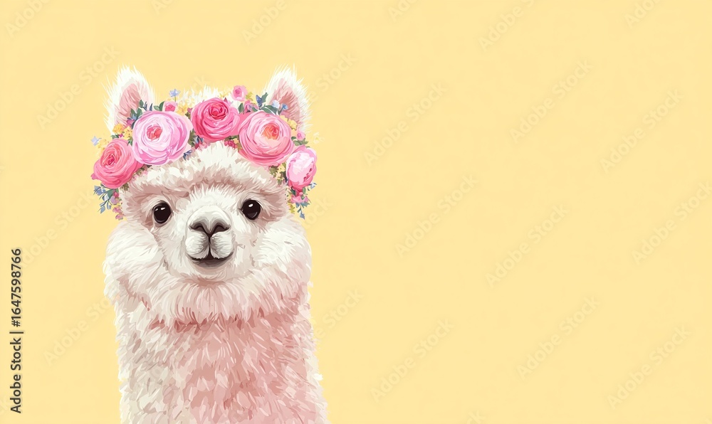 Dla Dzieci - AKWARELOWA ALPAKA W WIEŃCU KWIATOWYM #1647598766