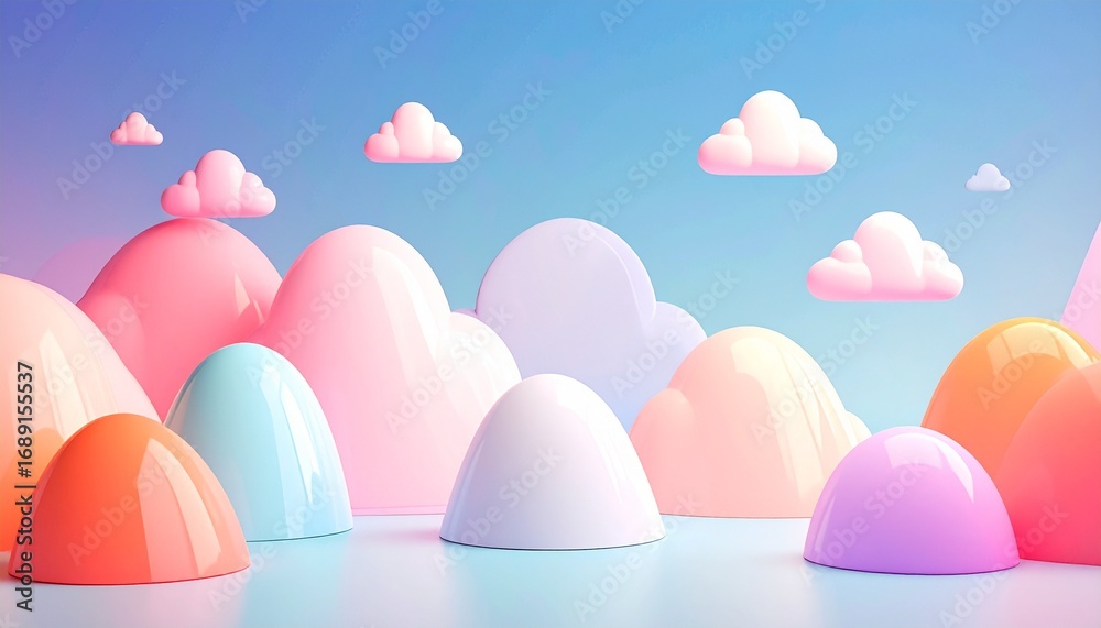 Dla Dzieci - Bajkowa kraina kolorowe chmurki tło 3D #1689155537