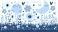 • Urocza ilustracja wektorowa z motywem słońca, księżyca, kwiatów i ptaszka na tle natury.