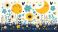 Dla Dzieci - Urocza ilustracja wektorowa z motywem słońca, księżyca, kwiatów i ptaszka na tle natury. #1791756916