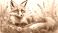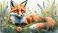 Dla Dzieci - Lis leżący na posłaniu z trawy w otoczeniu ziół i kwiatów #706328934