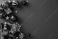 • Christmas composition with wrapped gifts, baubles, golden star and snowflake on dark green background. Ideal for Christmas card, invitation