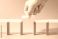 • Hand builds a wooden toy bridge symbolizing trust and connection