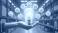 Góry - Hand holds glowing lightbulb over warehouse shelves filled with boxes. Icons show logistics,... #1769797746