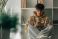 Góry - teenager at home with cell phone sitting on the floor #1770903174