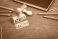 • Ethics Concept With Wooden Stamp On Blackboard Workspace