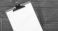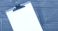 Góry - Flat lay of wooden table clipboard featuring blank paper and blue pen wide copy space for text #1951601733
