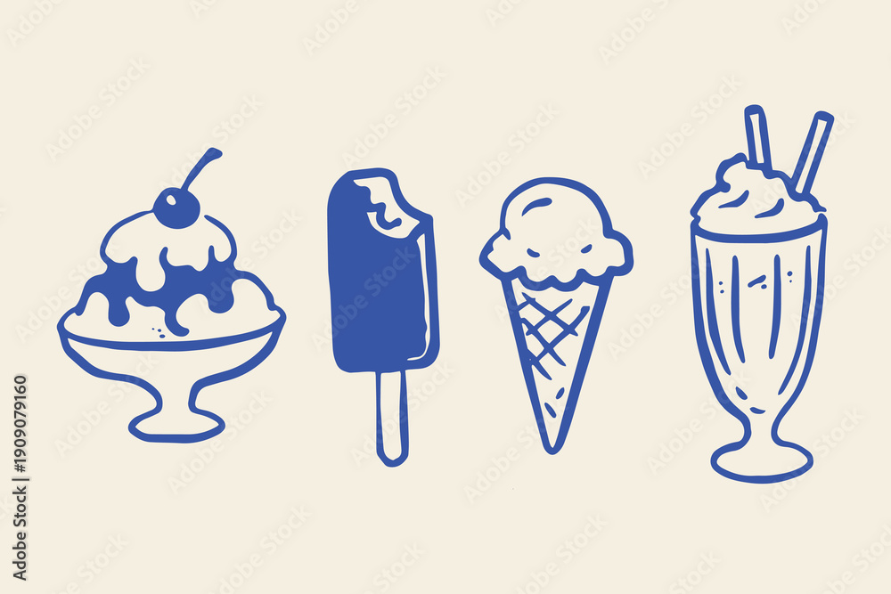 • Ice cream sundae popsicle milkshake doodle vector illustration