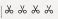 • UI icon vectors. Four black scissor icons in a row on a white background. Simple scissor design. Scissor symbols repeated. Minimalist scissor illustration. User interface icons, UI icon vector set.