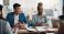 • Meeting, job interview and business people in office for recruitment, vacancy or hiring opportunity. Happy, discussion and hr managers with candidates for resume with onboarding process in workplace