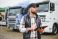 Pejzaż - Truck driver using digital tablet managing fleet logistics #1906683050