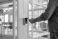 • Person scanning key card on a sleek access control reader to unlock an office door, illustrating modern digital security, authorized entry, and everyday corporate access procedures