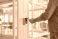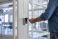 Pejzaż - Person scanning key card on a sleek access control reader to unlock an office door, illustrating... #1908095478