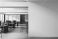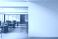 Pejzaż - Modern office workspace with wooden desks and chairs beside large empty white wall for interior... #1912732214