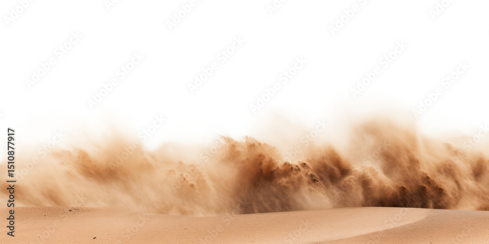 • sandstorm in desert with sand dunes and sky isolated on white or transparent png