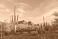 • Arizona desert landscape, giant cacti Saguaro cactus (Carnegiea gigantea) against the blue sky, USA