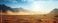• Majestic landscape of sand sun and rocky peaks at sunset. Golden horizons. Panoramic view of arid desert bathed in warmth of setting sun. Endless sands. Journey vast and serene at dusk