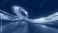 • 3d render. Abstract panoramic background of twisted dynamic blue neon lines glowing in the dark room with floor reflection. Virtual fluorescent ribbon loop. Fantastic minimalist wallpaper