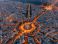 • Aerial of the Arc de Triomphe in Paris, France at night