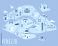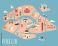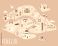 • Illustrated map of Venice with famous symbols, landmarks and building.