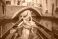 Wenecja - Rear, back view of elegant woman wearing straw hat on Gondola ride along beautiful street in... #526853134