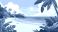 • Tropical beach with palm trees and sunset, vector illustration.