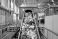 • A conveyor belt filled with household waste for recycling is lifted up for sorting.